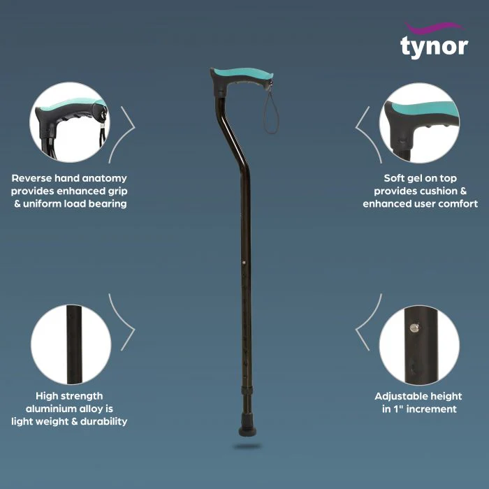 The Tynor Walking stick is the perfect help for anyone using it. It aids the senior by providing support while walking. The elegant design includes a custom-fit palm grip that perfectly fits the hands. With special attention to palm rest, this walking stick is sure to reduce your fatigue.