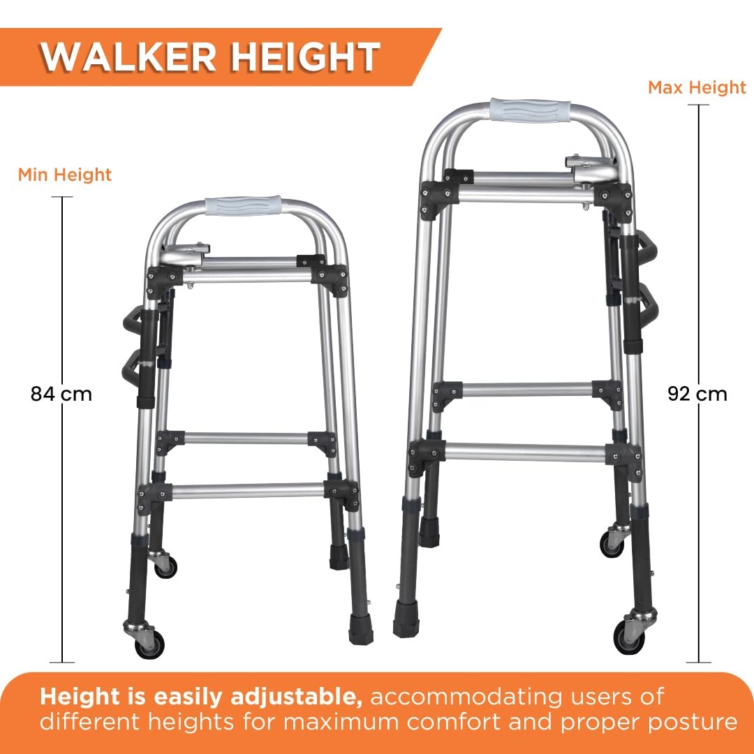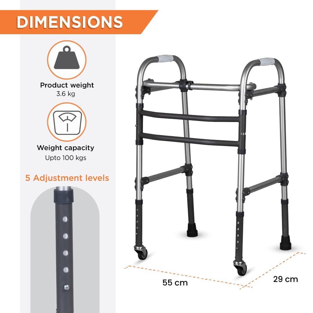 Vissco Dura Max Walker with Wheels for Elderly & those Physically Challenged, Foldable, Light Weight & Height Adjustable Walking Aid