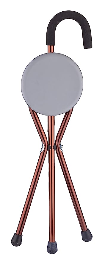 MEDITROVE Walking Stick Elderly Folding Chair Aluminum (Brown)
