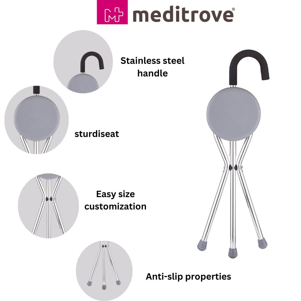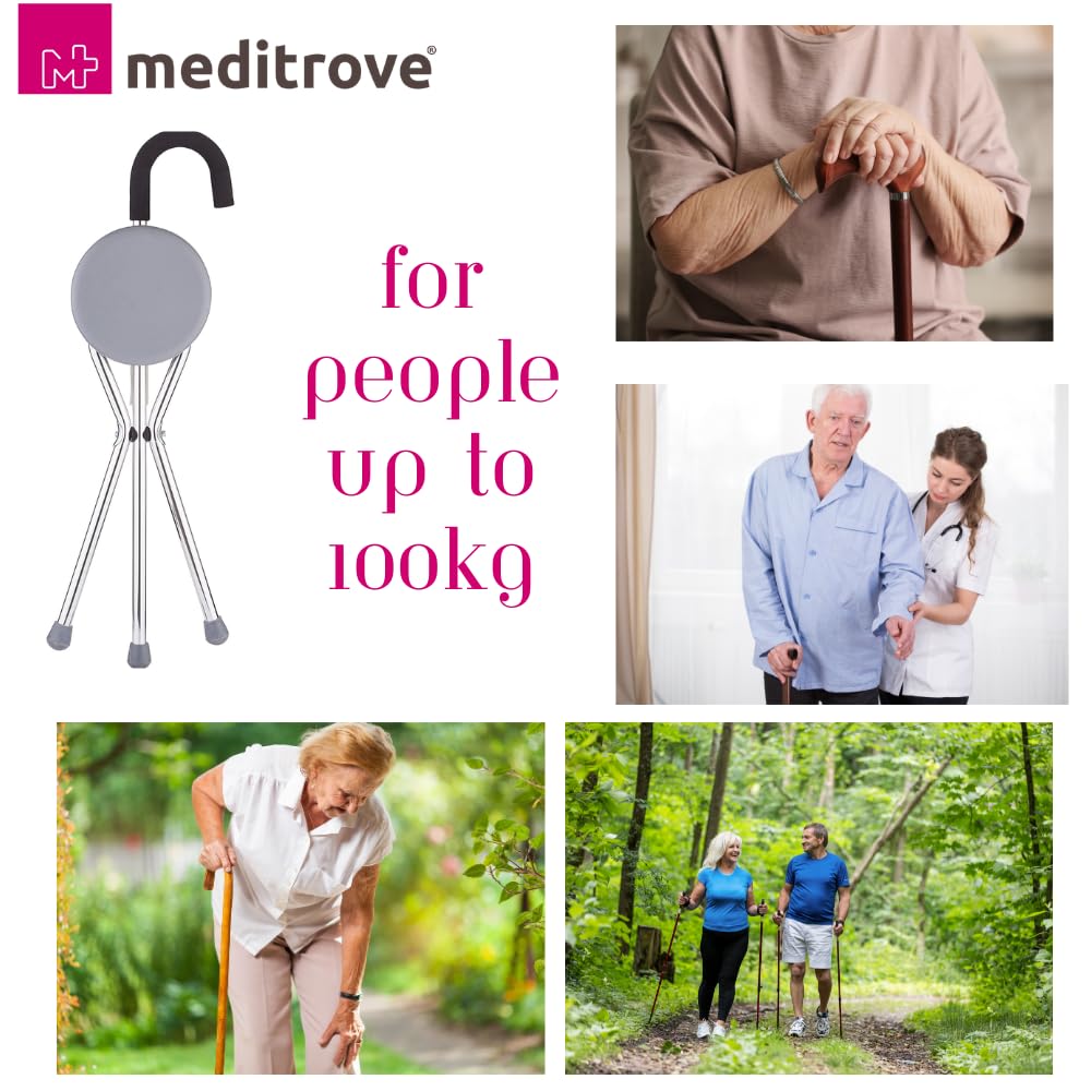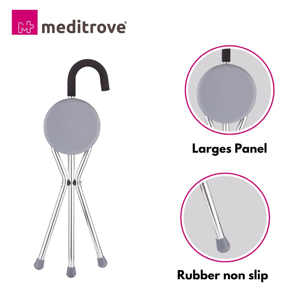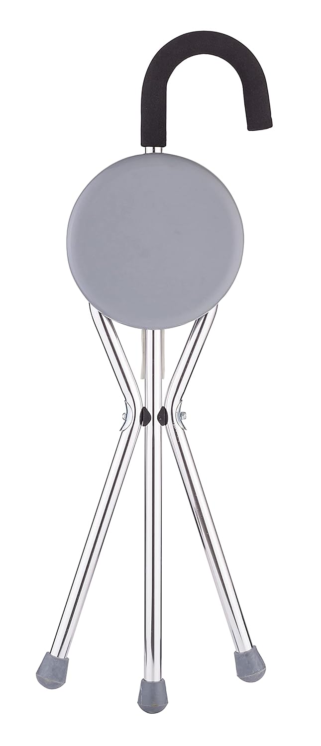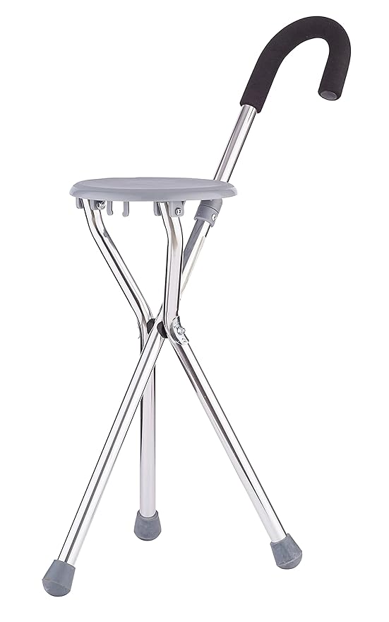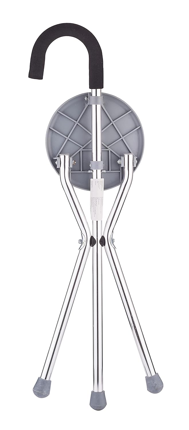 - When it stretched, can be used as a chair, three‑legged support, stable and safe, when it folded, can be used as a walk stick for daily outdoor walk. It is used for the elderly and the disabled to assist sports and exercise.