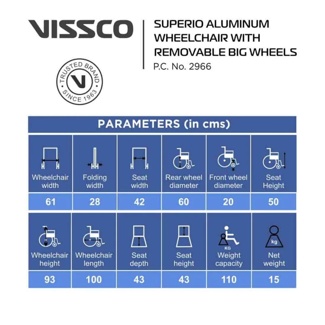 Vissco Superio Aluminium Wheelchair with Removable Big Wheels